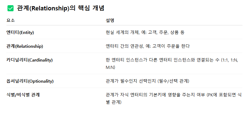 현실 세계를 객체로 변환하는 객체지향 방법론의 DB버전이라고 볼 수 있겠네요.