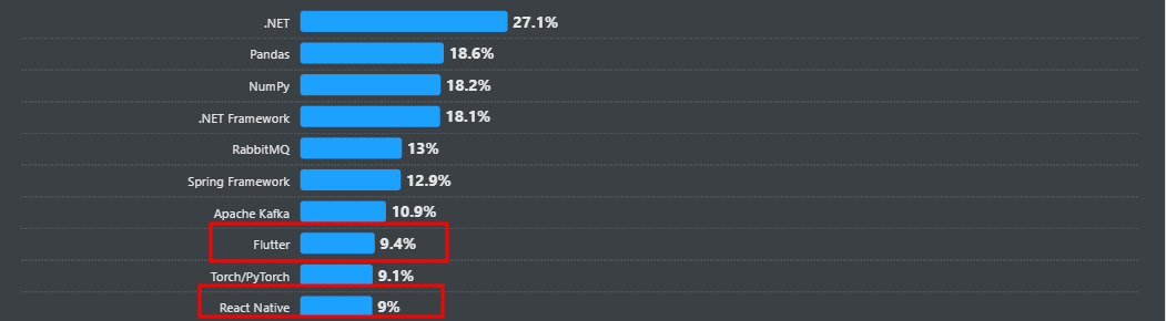 경쟁자라고 할 수 있는 React Native를 후발 주자인 Flutter가 역전한 상황 입니다.
