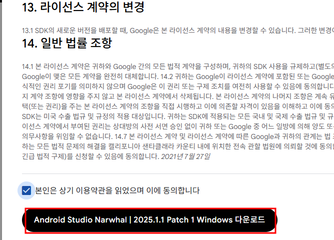 3. 그럼 팝업창 하나가 뜨는데 스크롤 가장 아래로 내려서 체크 후 다운로드 선택 합니다.