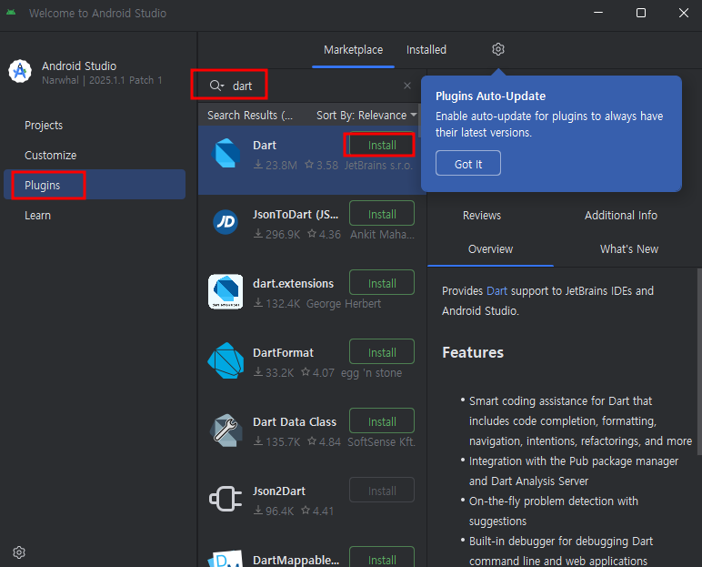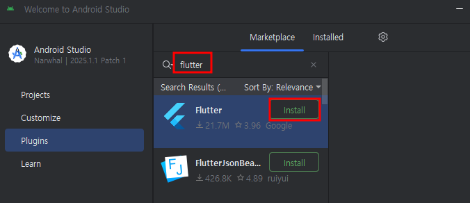 안드로이드 스튜디오에서 Flutter 프로젝트 생성