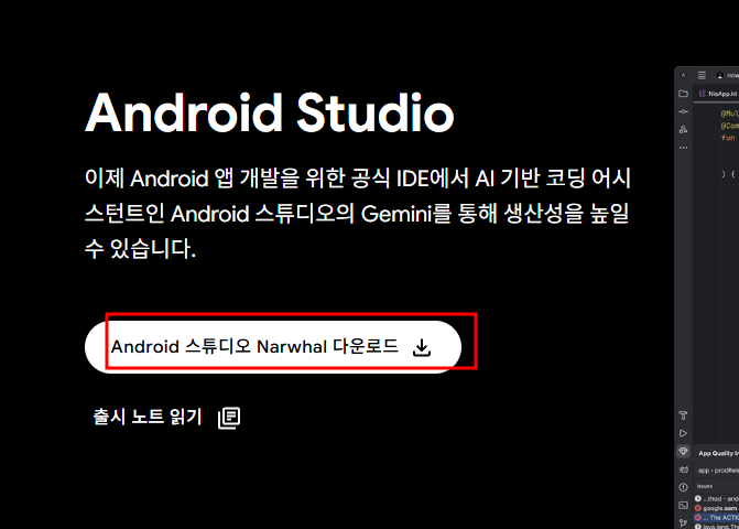 안드로이드 스튜디오 역시 같은 구글에서 만든 IDE로 Flutter 앱 개발할 수 있는 최적의 환경을 제공 합니다.