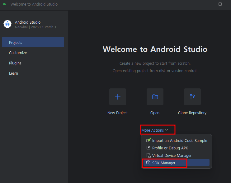 1. More Actions - SDK Manager 선택
