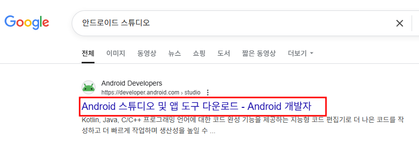 1. 구글에 안드로이드 스튜디오 검색하고 아래 사이트에 접속 합니다.